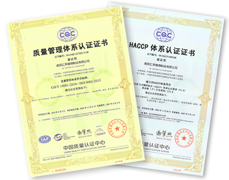 質(zhì)量管理體系和HACCP 體系認(rèn)證證書