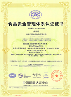 食品安全管理體系認(rèn)證證書